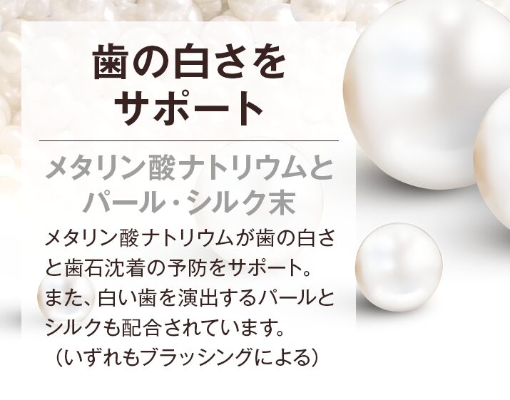 ポリリン酸ナトリウムが汚れを浮かせながら歯面をコーティングし、グリチルリチン酸2Kやシメン-5-オールが炎症・菌の増殖を抑制。