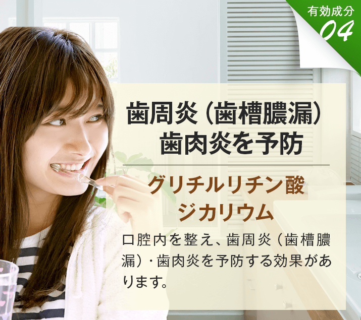 さらにβ-グリチルレチン酸やシャクヤク・ウーロン茶エキスが歯ぐきの血流を促進し、健康的なピンク色へ導きます。