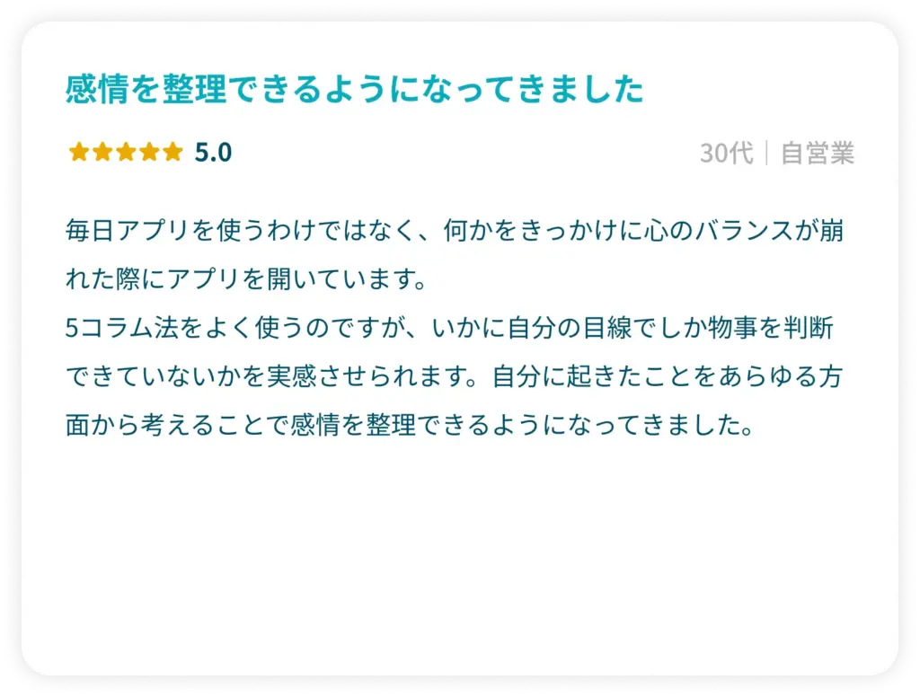 セルフケア・メンタルケアには、うってつけのアプリの体裁が整ったといえるでしょう。
